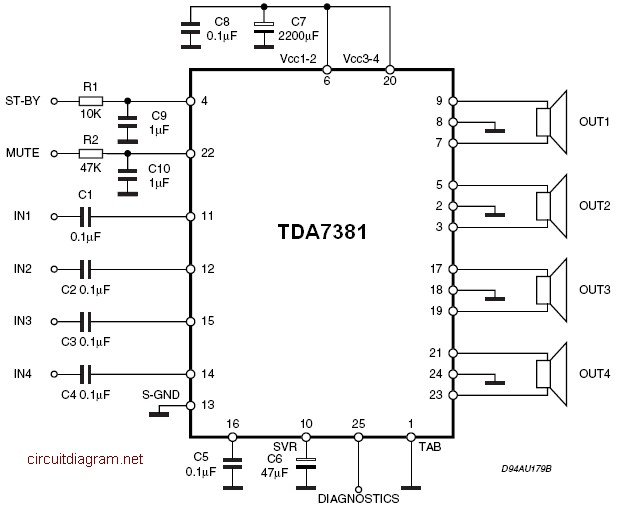 Quad Audio Amplifier Circuit Diagram With Tda7831 4 U00d725w