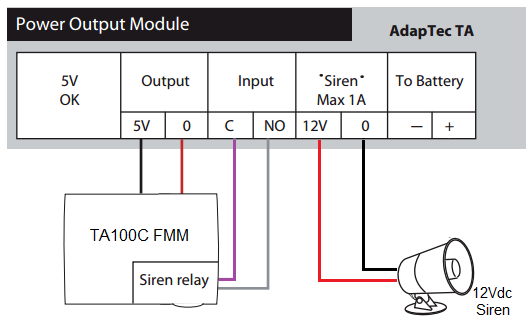 Connecting The Ta100c Fmm To Adaptec Ta And 12vdc Or 240vac External Sirens