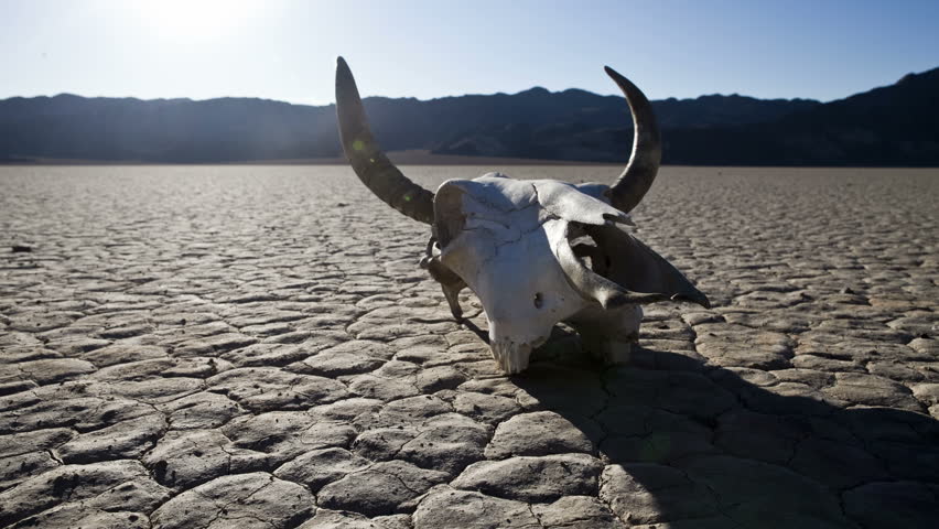 Pan Of Desert Floor With Cow Skull