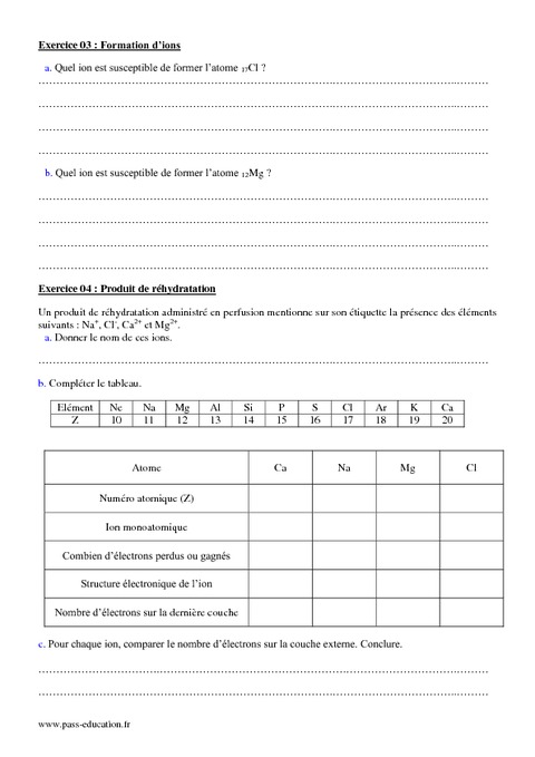 Ions Monoatomiques - 2nde - Exercices Corrig U00e9s