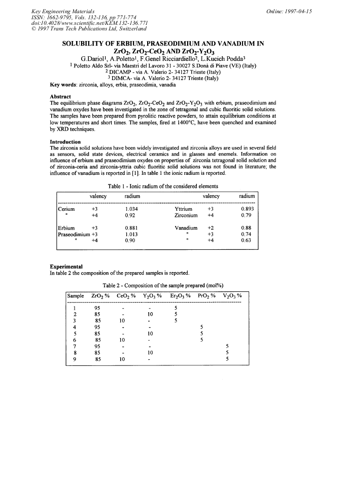Solubility Of Erbium Praseodimium And Vanadium In Zro2 Zro2