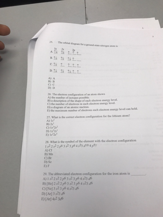 Solved The Orbital Diagram For A Ground State Nitrogen Is