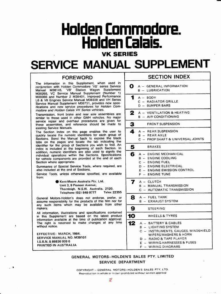 Vk Commodore Workshop Manual