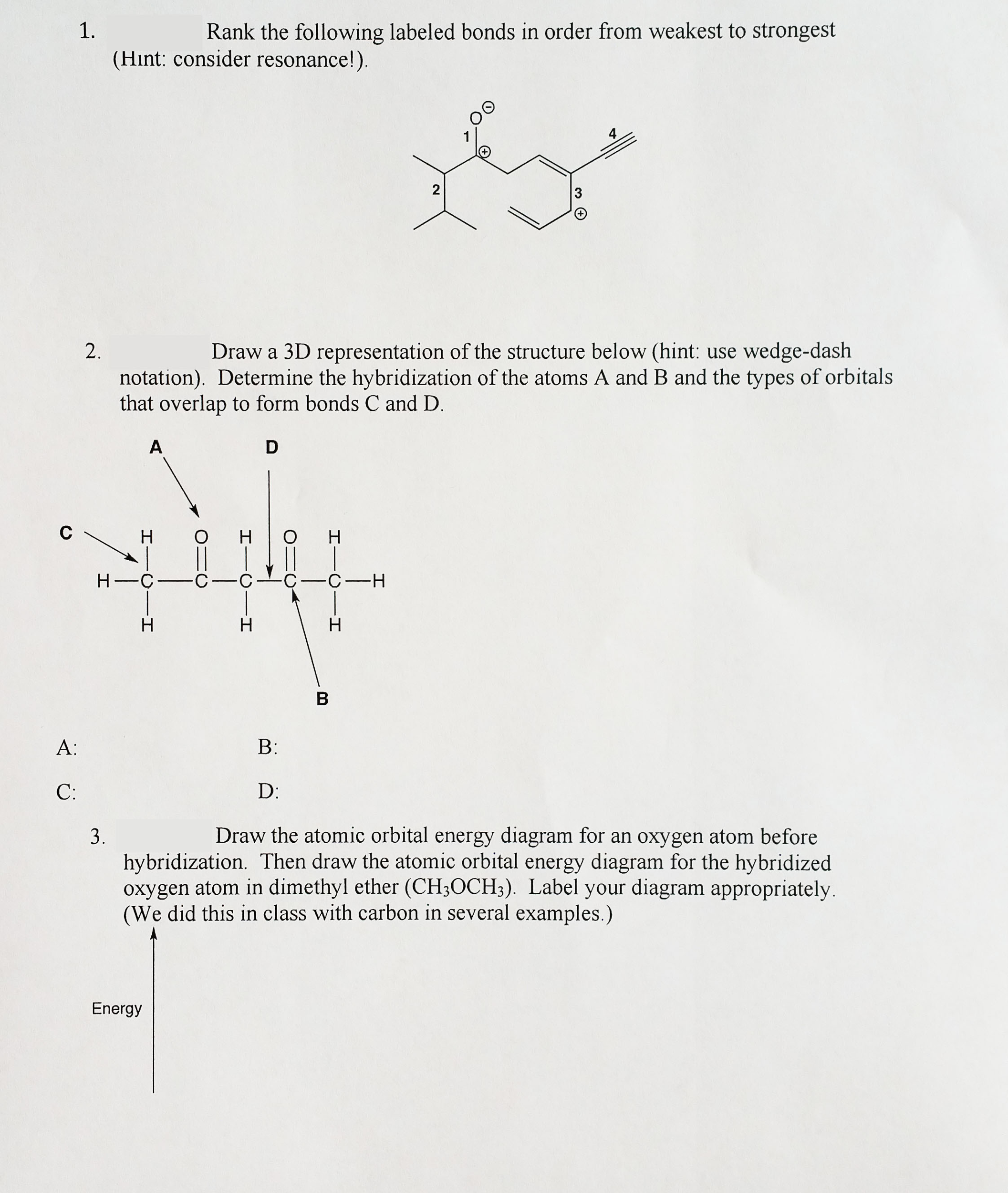 Solved 1 Fill In The Table Below With The Type Of Bond T
