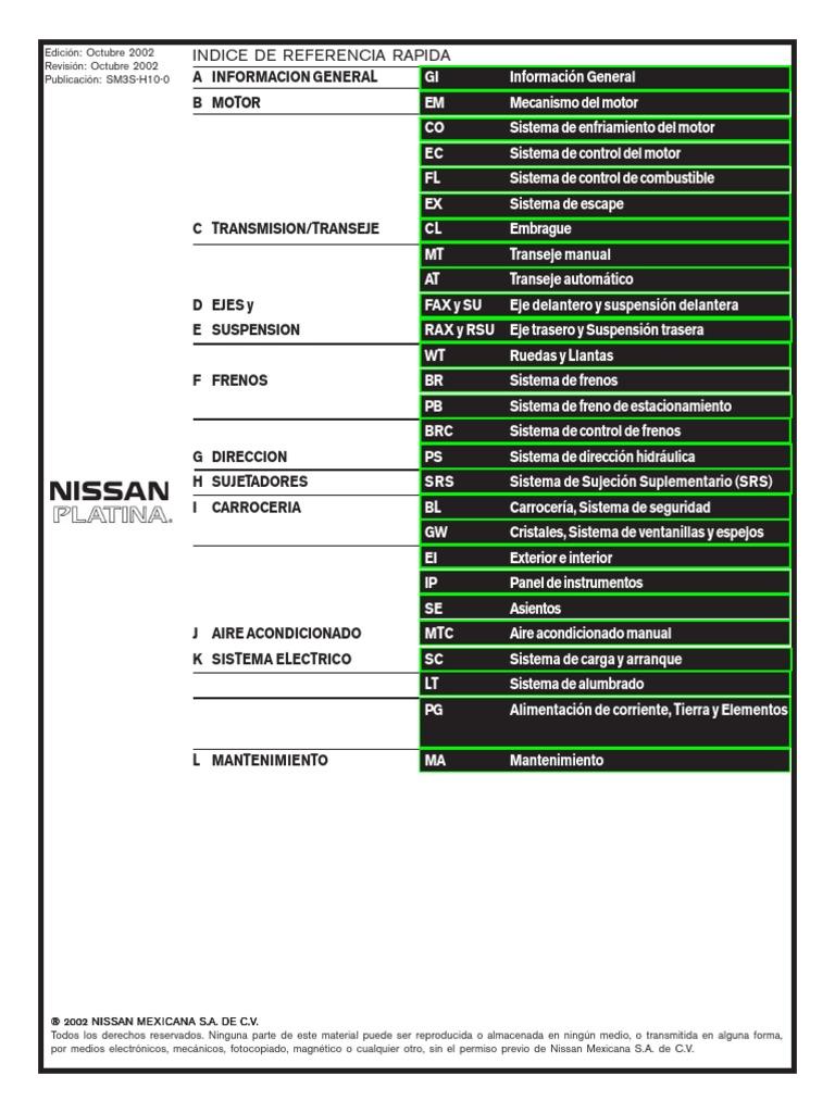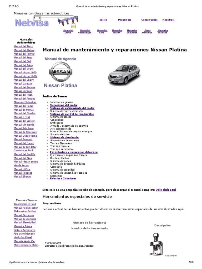 Manual De Mantenimiento Y Reparaciones Nissan Platina Pdf