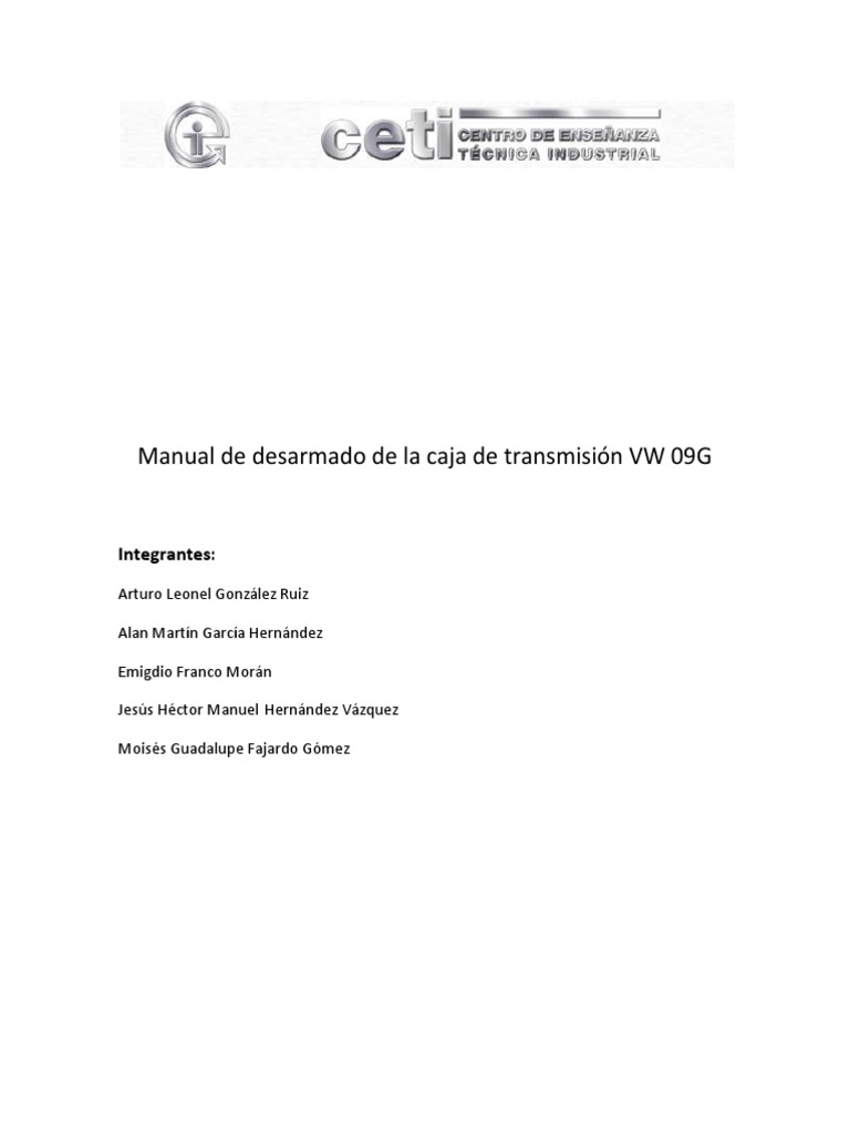 Manual De Desarmado De La Caja De Transmisi U00f3n Vw 09g