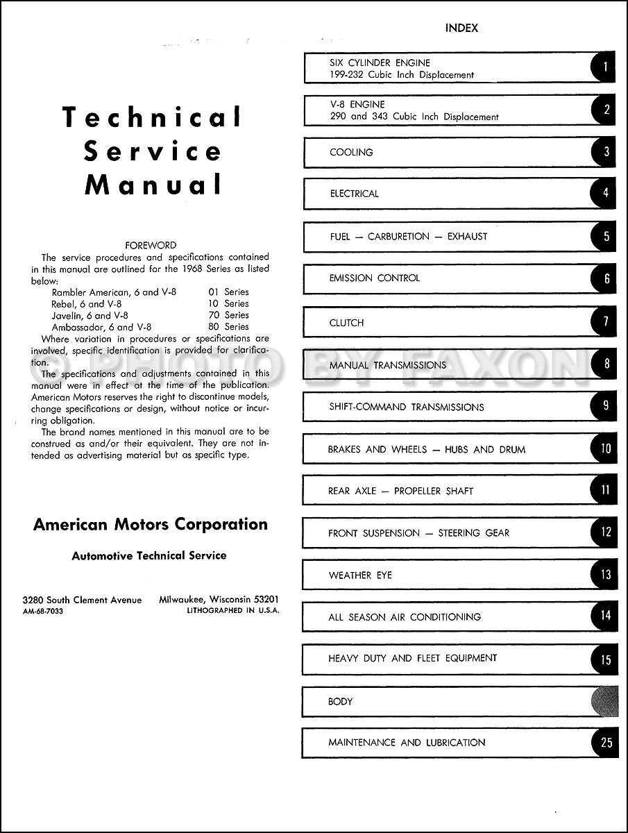 1968 Amc Repair Shop Manual Reprint