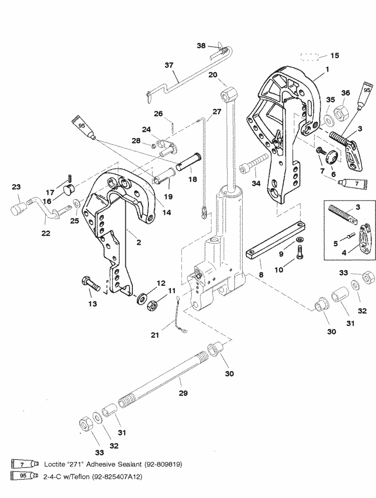 Mercury Marine 40 Hp 2 Cylinder Clamp Bracket Gas Assist Trim Parts